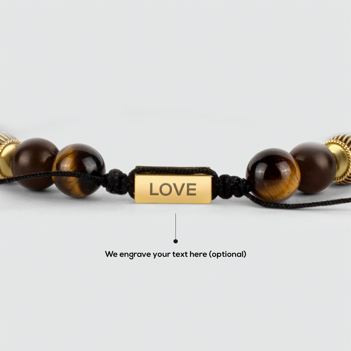 Kaliq - Adjustable Tiger Eye Beaded Bracelet in Gold 8mm