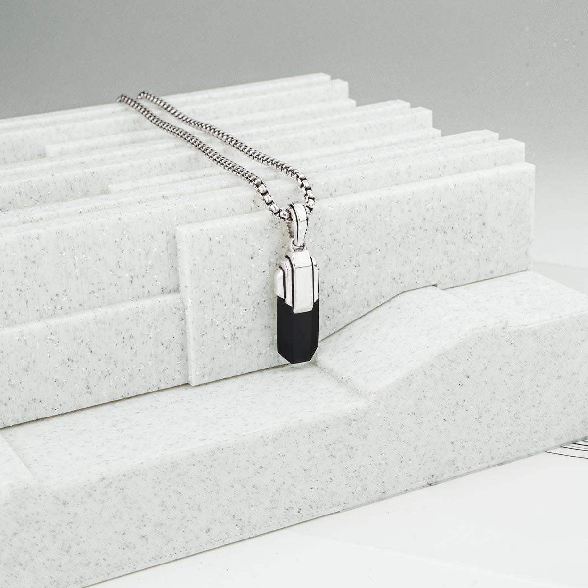Tahsin - Art Deco Silver Black Onyx Pendant