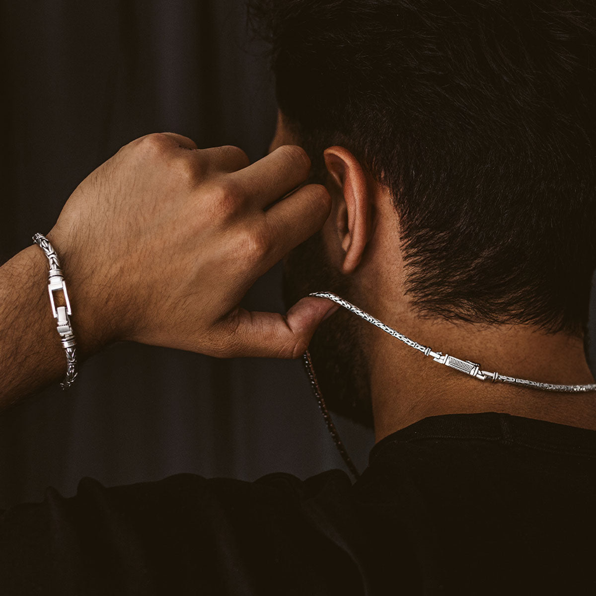 Egal, ob Sie sich schick oder leger kleiden, das Armband Turath & die Kette Ramsi vervollständigt Ihren Look, egal zu welchem Anlass.