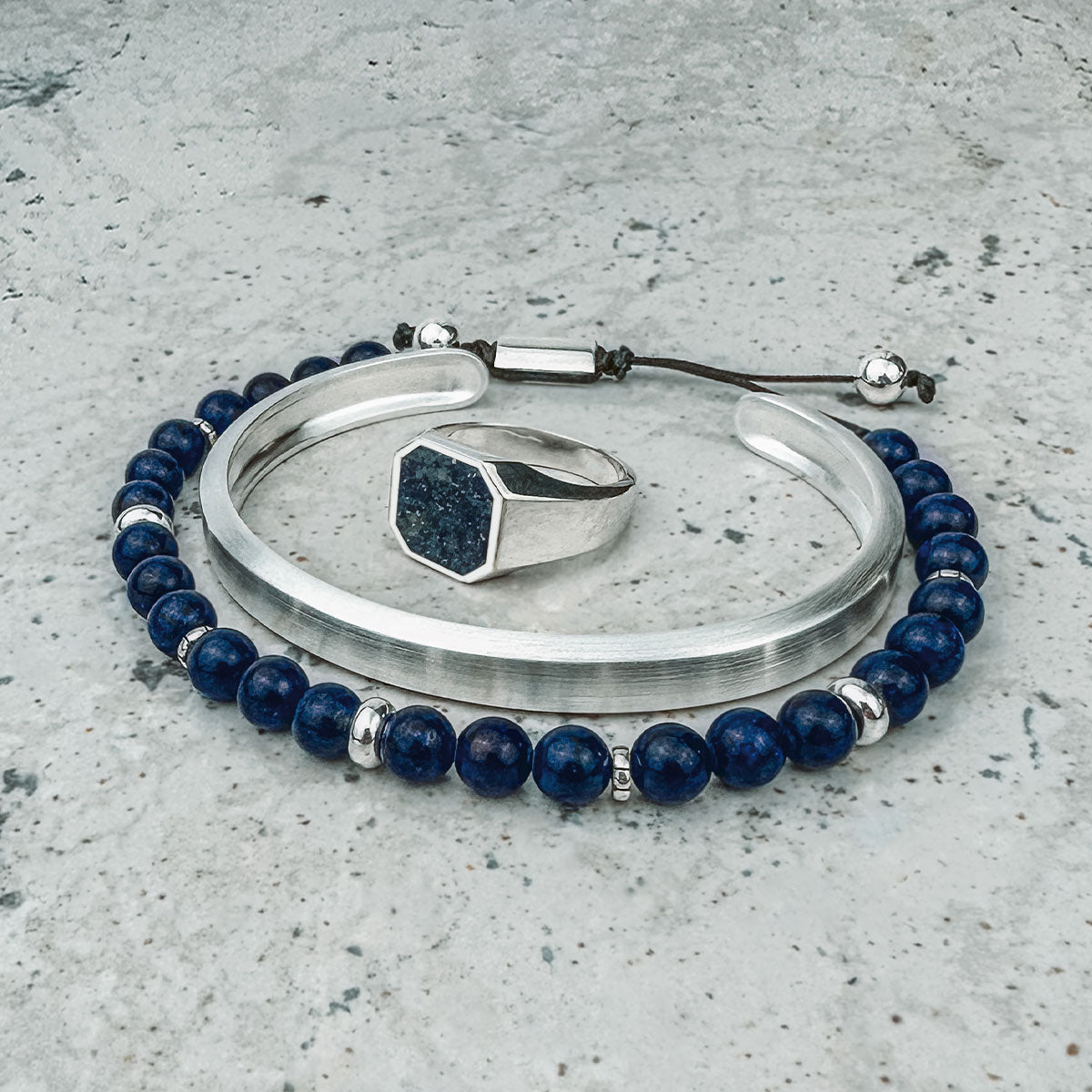 Kadar - Verstellbares Lapislazuli-Perlenarmband in Silber 8mm