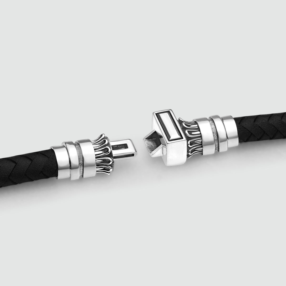 Vous pouvez facilement assortir ce bracelet en cuir argenté à n'importe quelle tenue et à tous vos autres bijoux en argent.