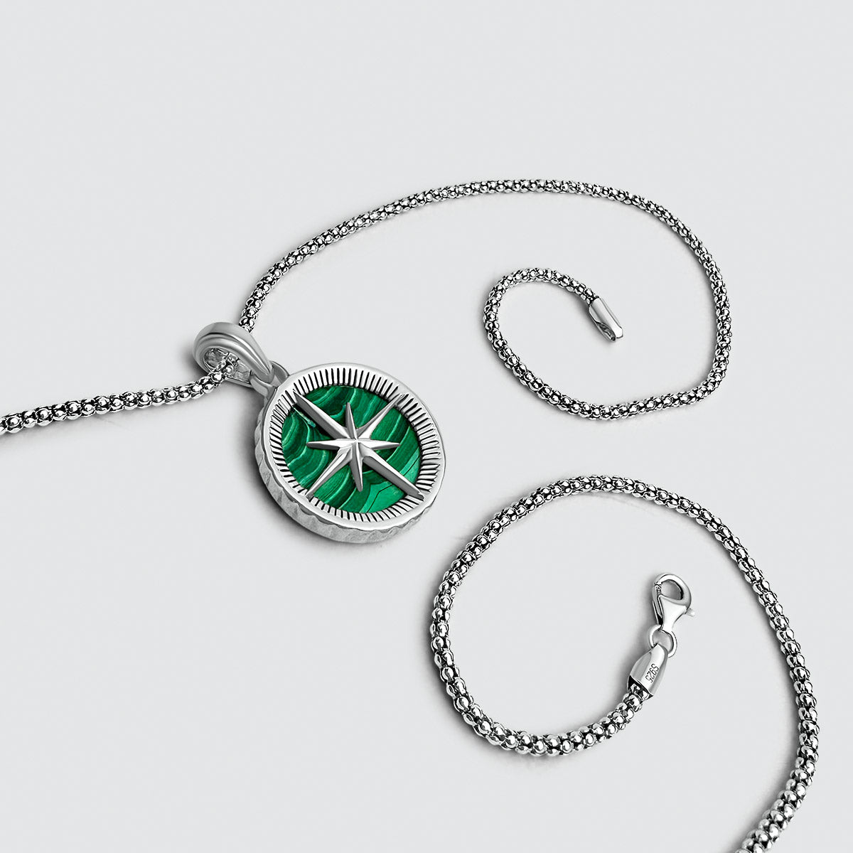 Voici Safar, qui signifie "voyage" en arabe, un hommage à votre esprit d'aventure. Plus qu'un simple pendentif, Safar représente votre évolution personnelle. Il capture à la fois l'essence de la direction et de la croissance. Les clous sur le bord de la boussole reflètent une élégance contemporaine qui convient à l'homme d'aujourd'hui. Portez Safar de deux façons. Avec le détail de la boussole ou la pierre de malachite vibrante au premier plan. Ce pendentif est un symbole du voyage de votre vie, il représente votre évolution personnelle. Portez Safar près de votre cœur, comme un rappel du chemin en constante évolution que vous empruntez.