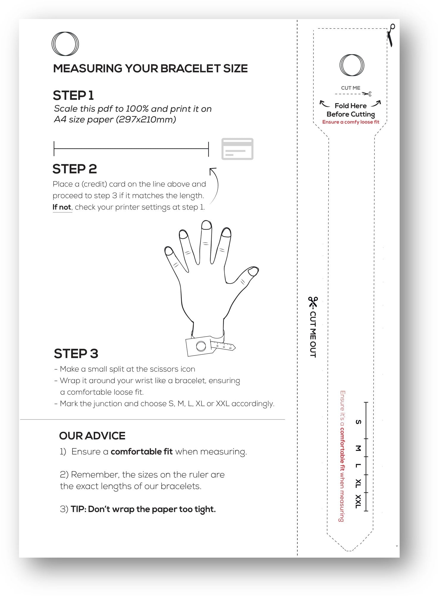 - Wikkel de sizer om je vinger - zorg dat hij goed zit, maar niet te strak.