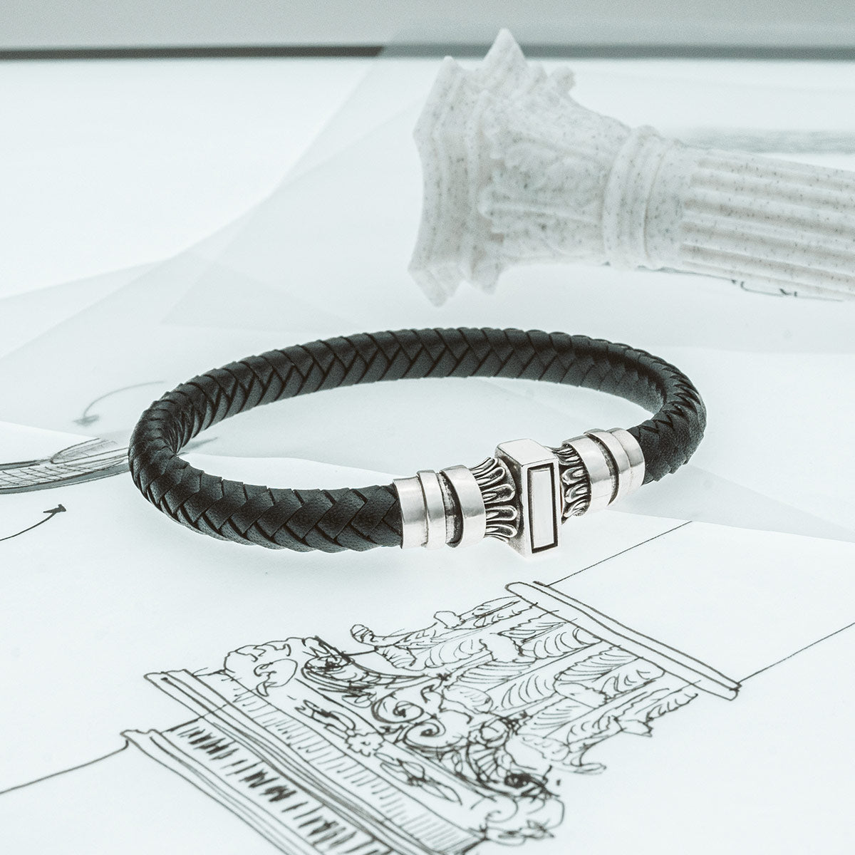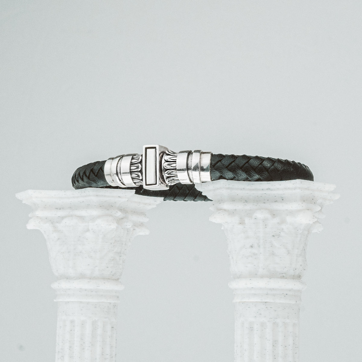 Mirel - Authentiek Zwart Leren Armband met Sterling Zilver 7mm