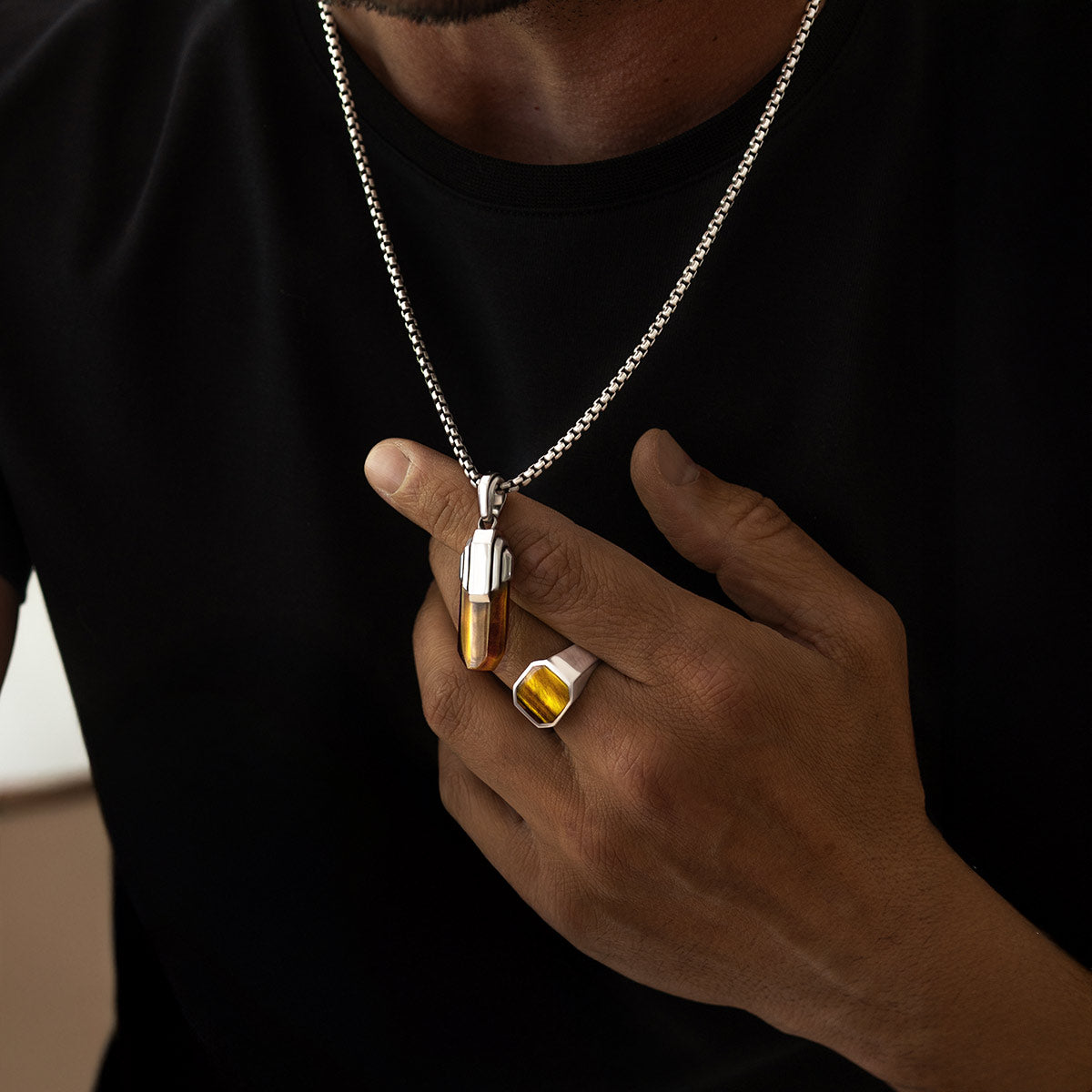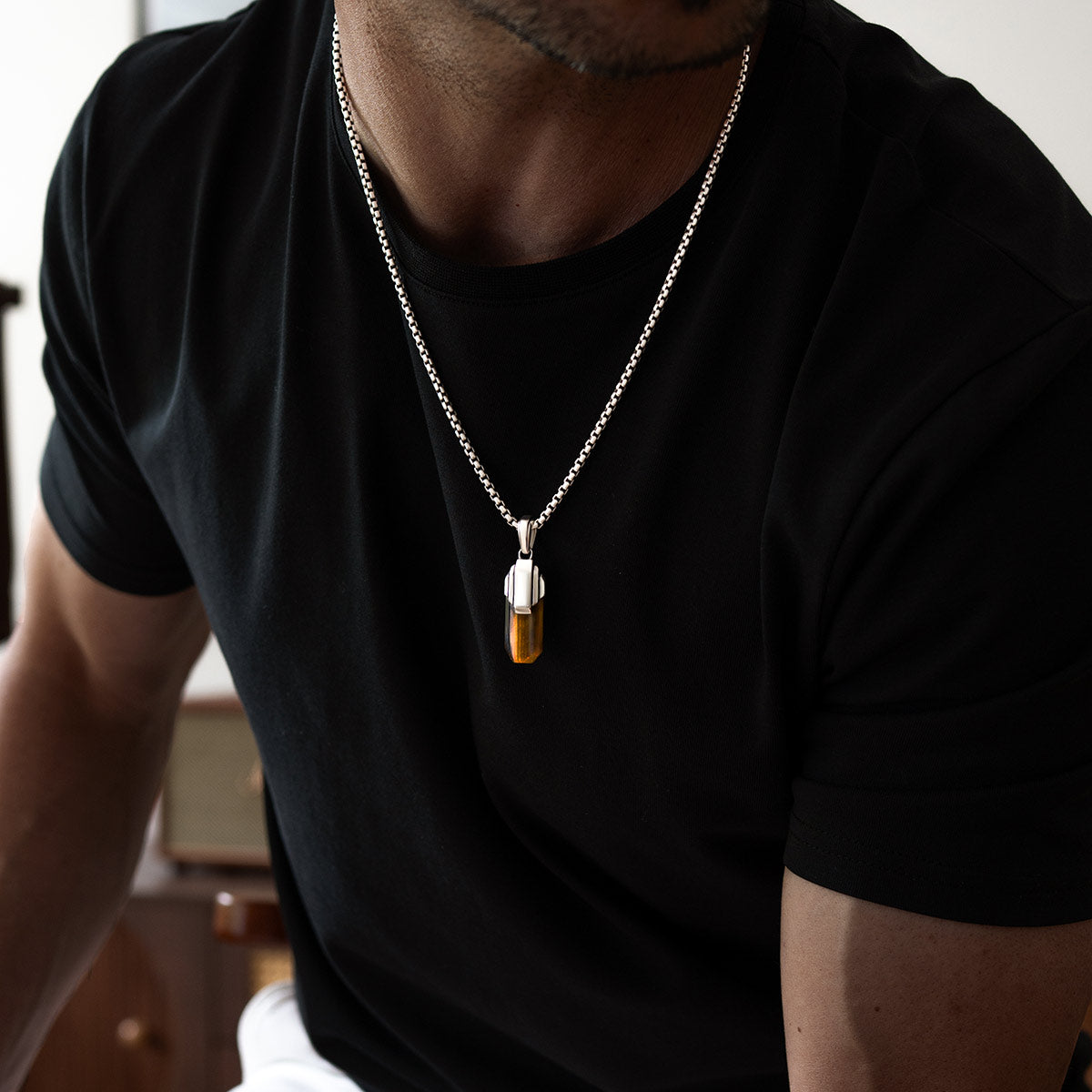 Tahqim - Art Deco Zilveren Tijgeroog Hanger