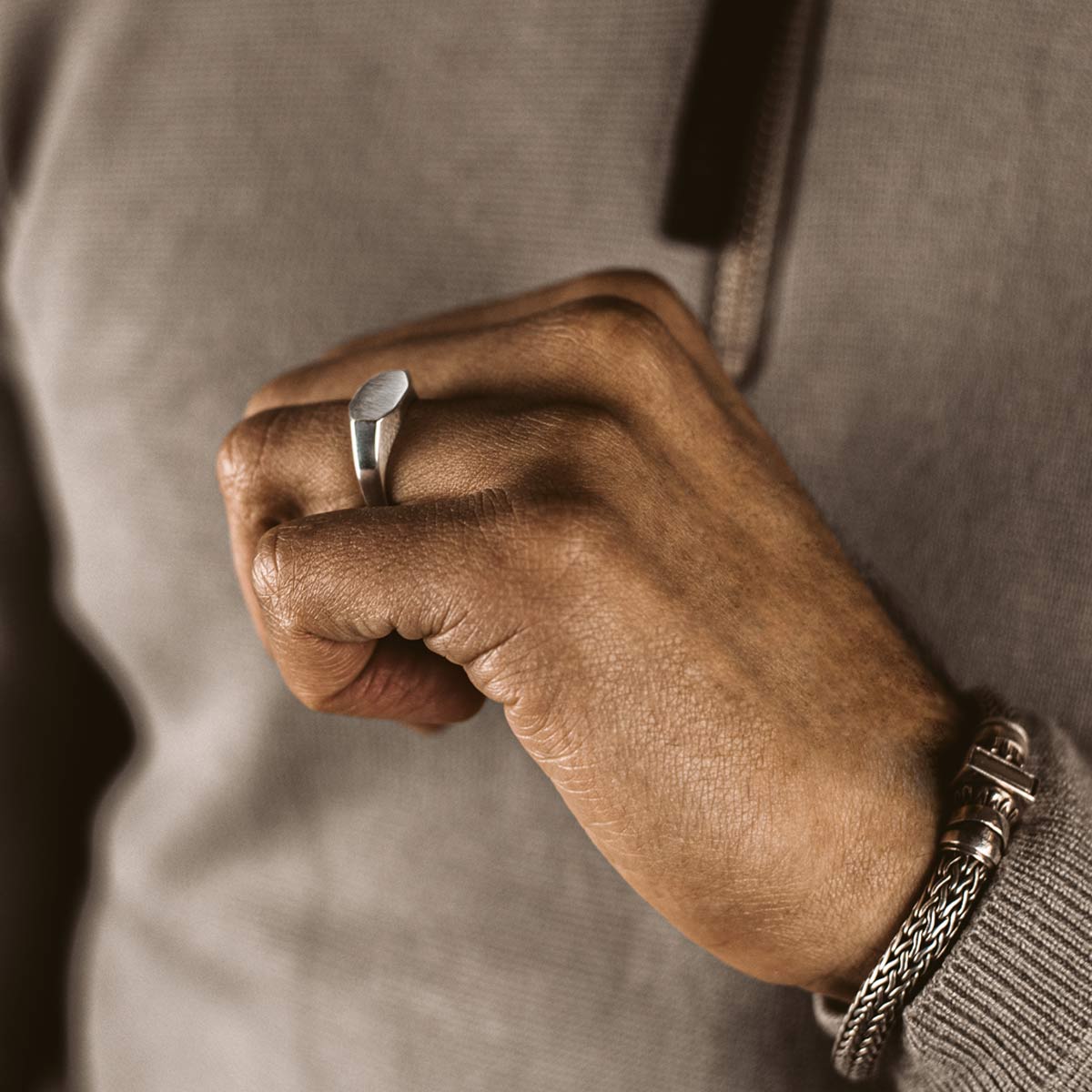 Tariq - Mat geborstelde zilveren zegelring 7 mm