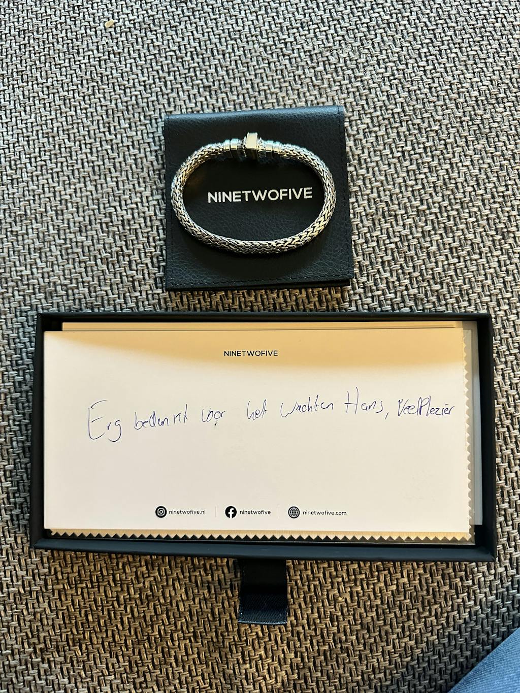 Elke bestelling wordt stijlvol verpakt in een op maat gemaakte giftbox. De luxe zit niet alleen in het cadeau, maar in hoe het wordt gebracht.