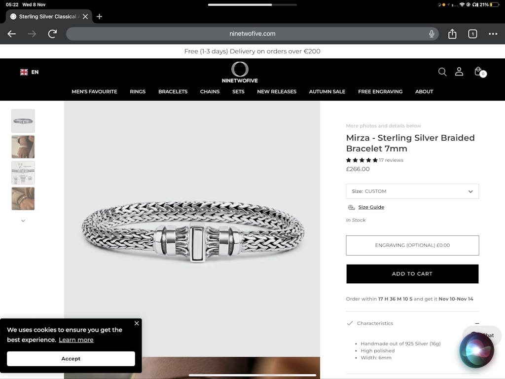 Gegraveerde artikelen kunnen niet worden geretourneerd, tenzij ze deel uitmaken van onze collectie Ruilbare artikelen na graveren, waarbij ruilen van maten is toegestaan.