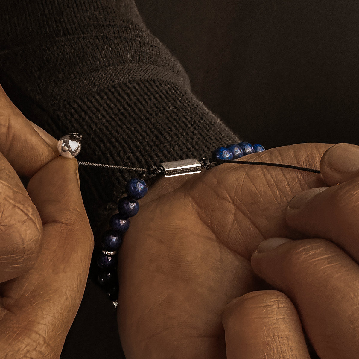 Kadar - Verstelbare Lapis Lazuli Kralen Armband in Zilver 6mm