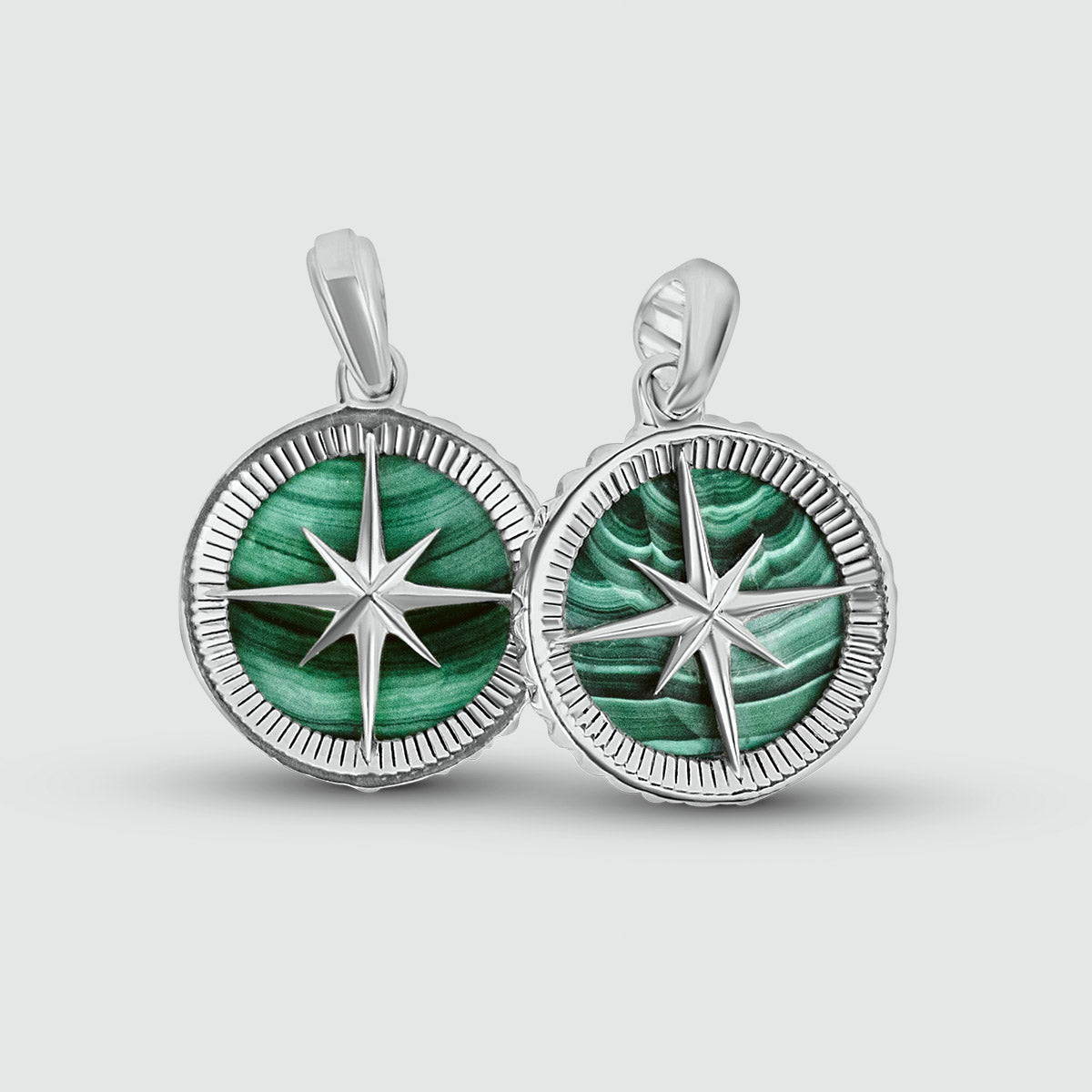 Safar - Sterling zilveren malachietkompas hanger